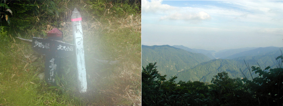 左下は途中で通過するイブリ山の山頂の標識です。イブリ山を過ぎると霧が晴れ、山並みが眺められるようになりました。(右下)
